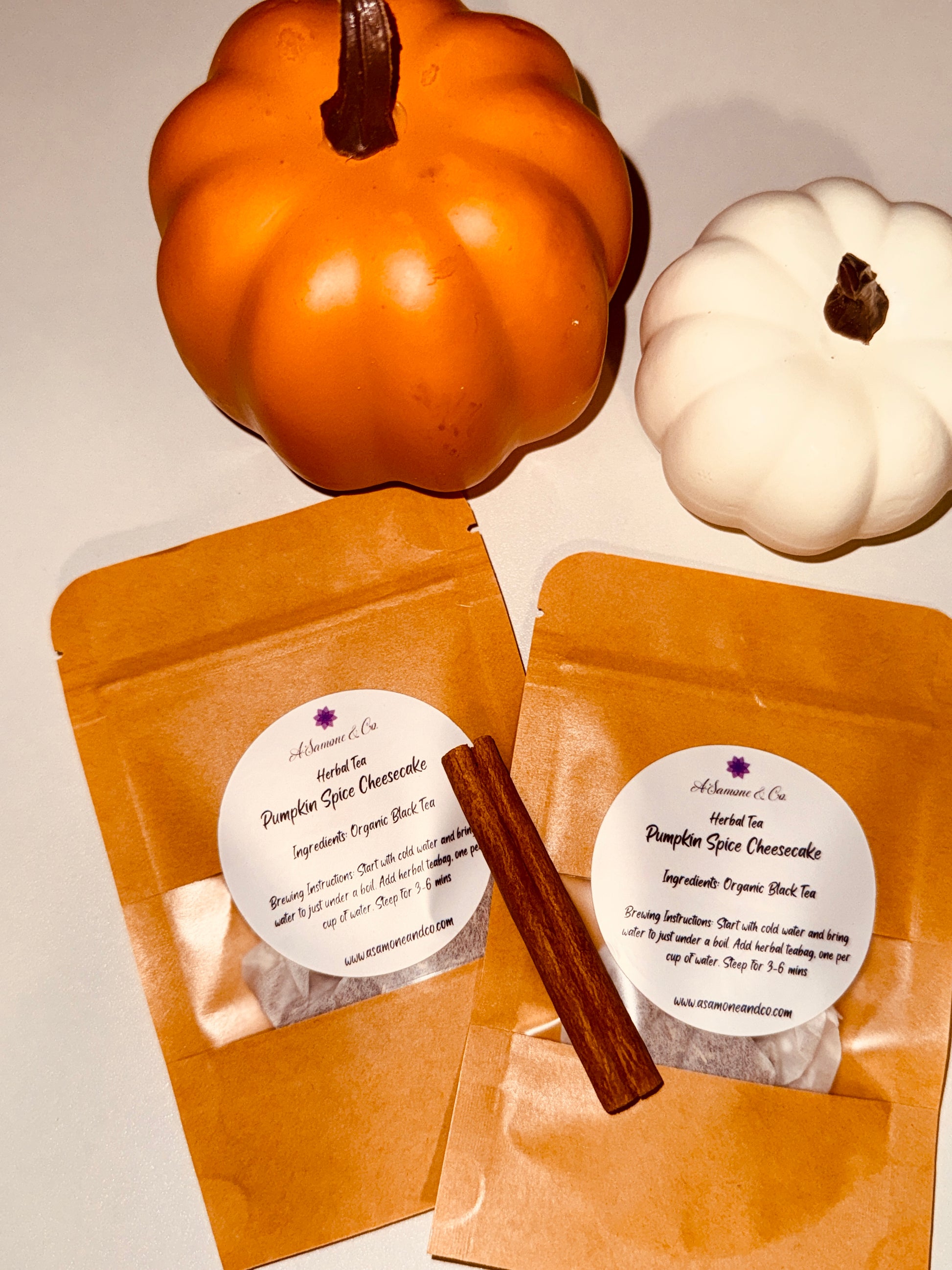 Enjoy the Fall season in a cup with our naturally caffeine free Pumpkin Spice Cheesecake Herbal Tea! This decadent blend features a comforting base like red rooibos, infused with rich, creamy pumpkin, sweet spices like cinnamon and nutmeg with a hint of tangy cheesecake. Enjoy it iced or hot like a "guile free" dessert experience that captures the warm, indulgent taste of autumn without the extra calories.